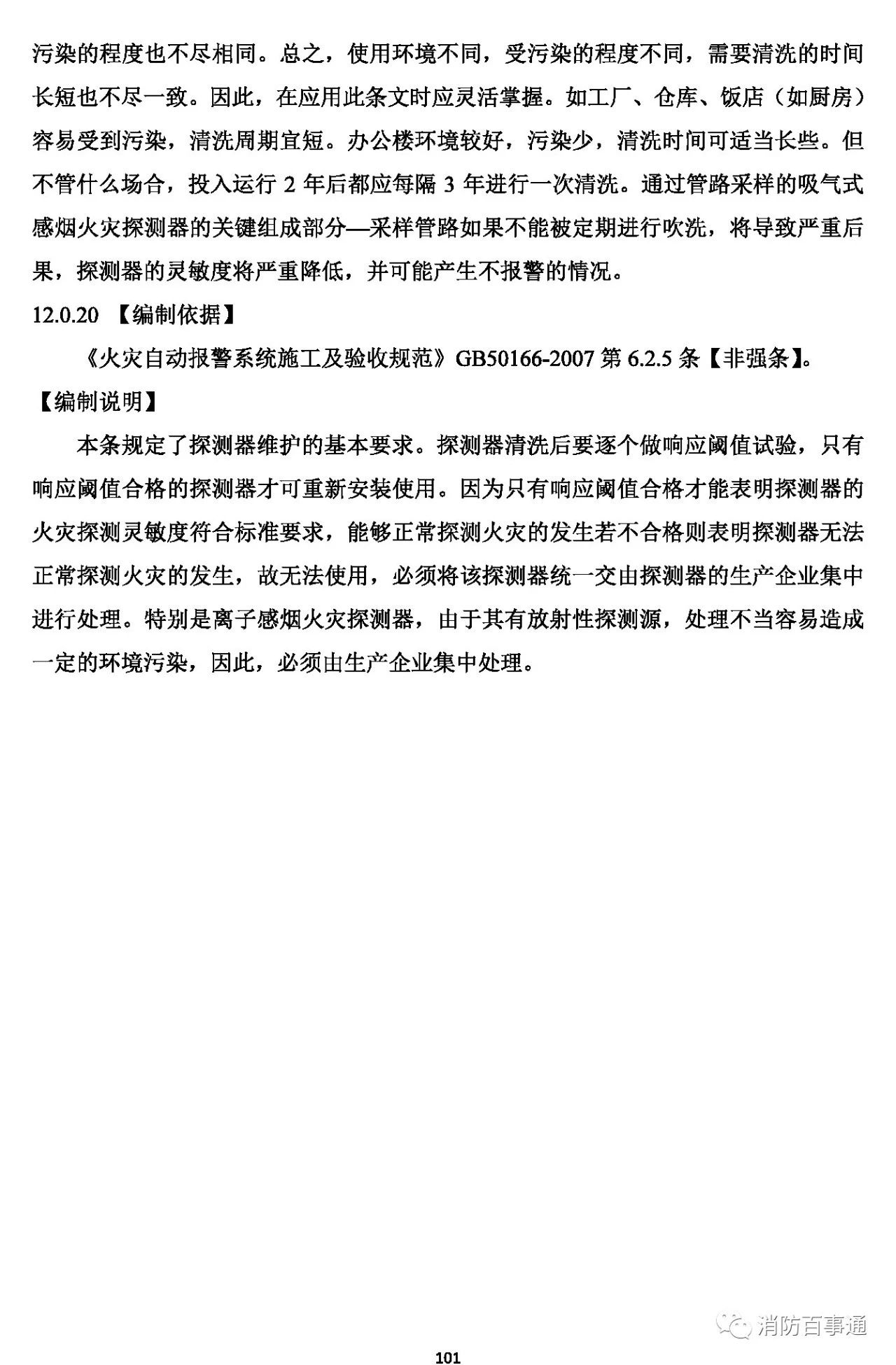12.0.19 點型感煙火災探測器安裝 2 年后,每3 年應至少全部清洗一次;通過采樣管采樣的吸氣式感煙火災探測器,每年至少應對采樣管吹掃一次。