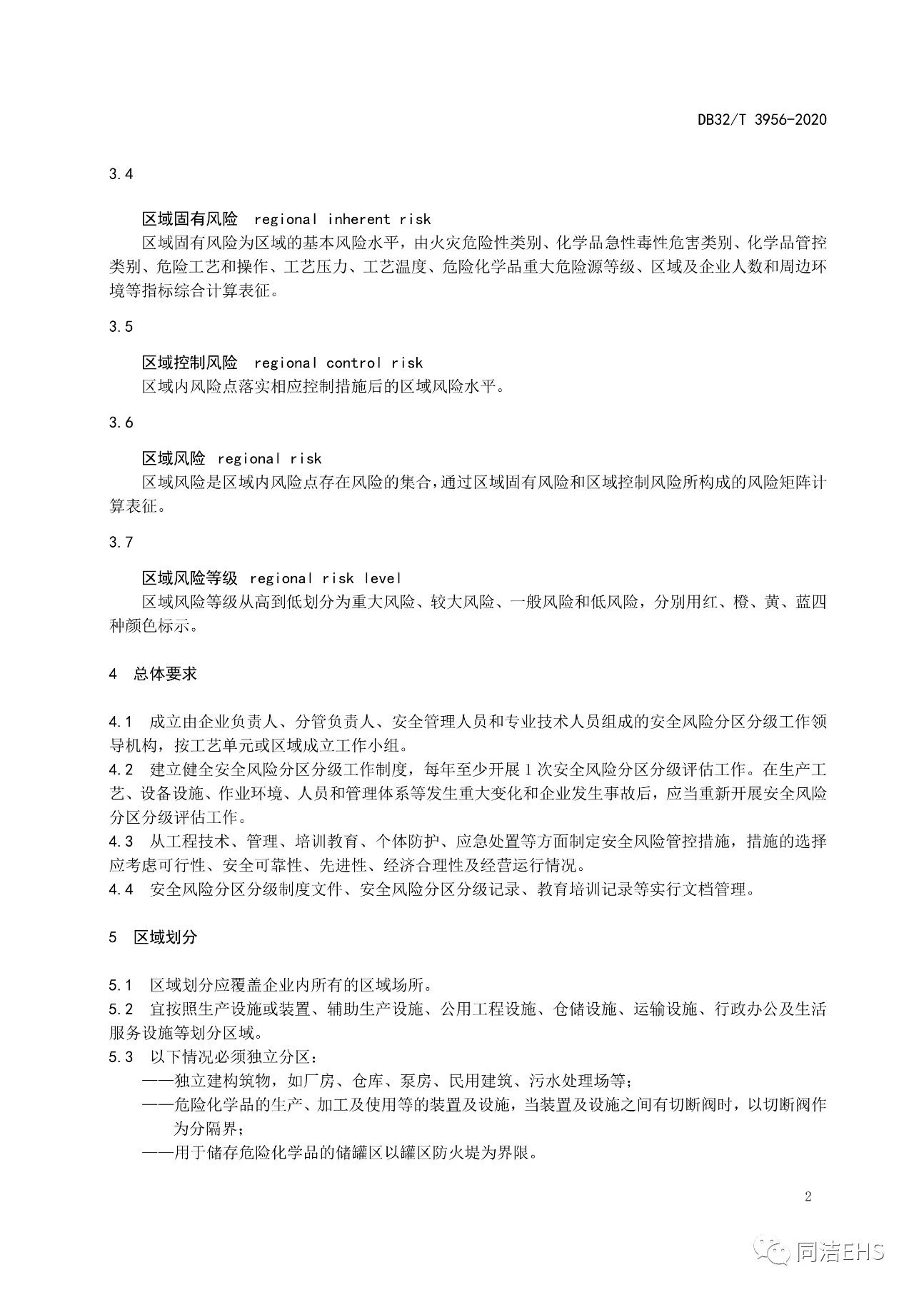 DB32T 3956-2020 化工企業安全風險分區分級規則(江蘇省標準),2020年1月15日起實施