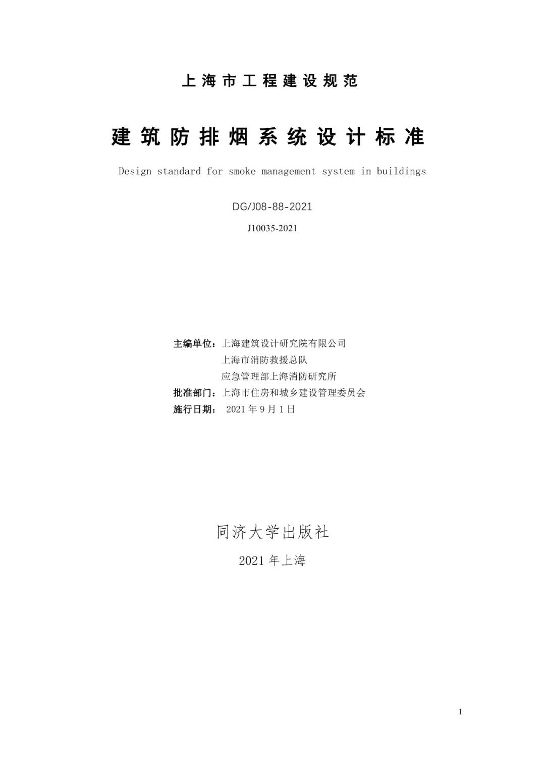 最新定稿:上海《建筑防煙排煙系統設計標準》最新定稿版