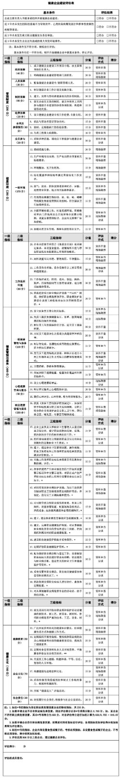 《健康企業建設評估技術指南》評估細則