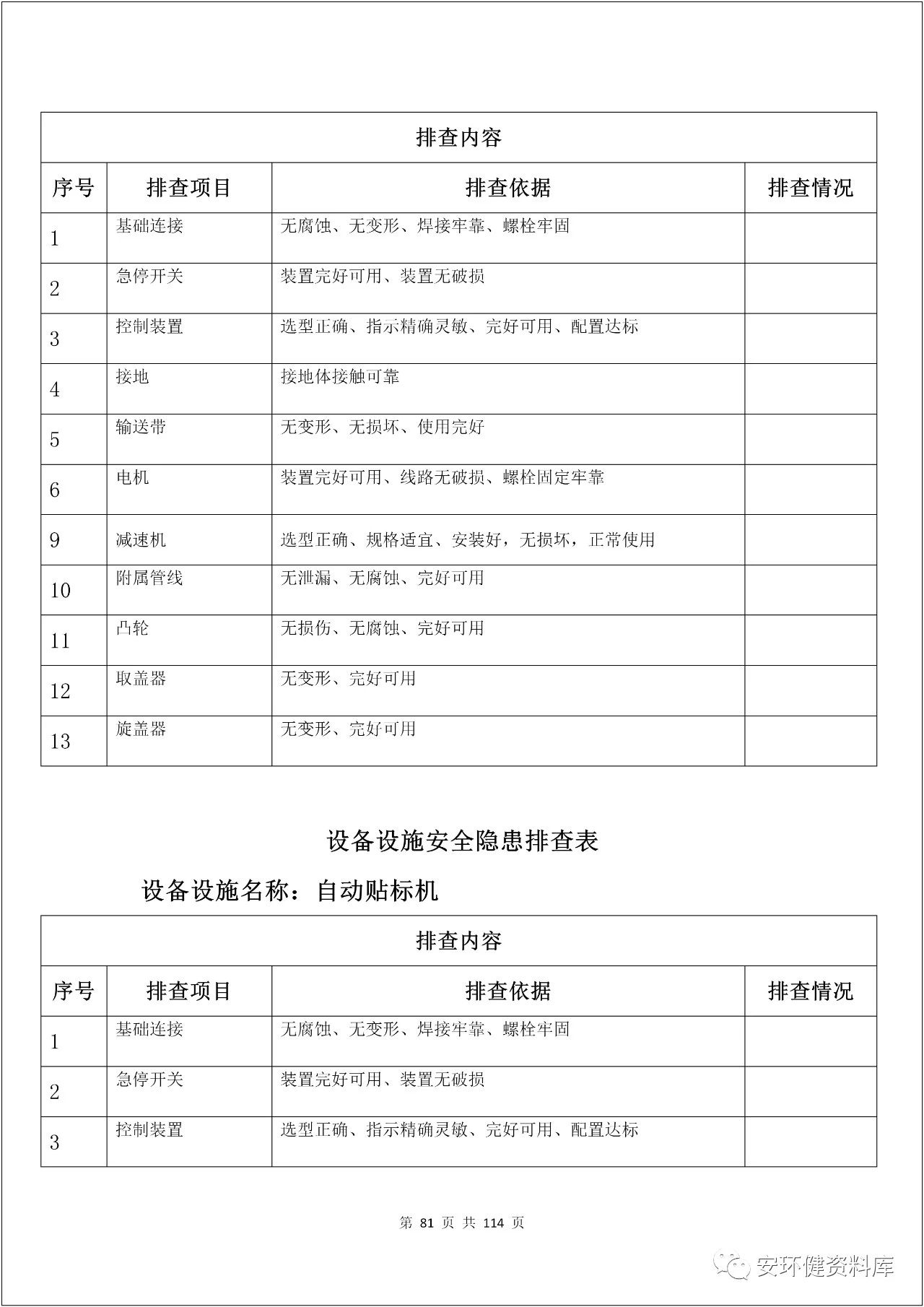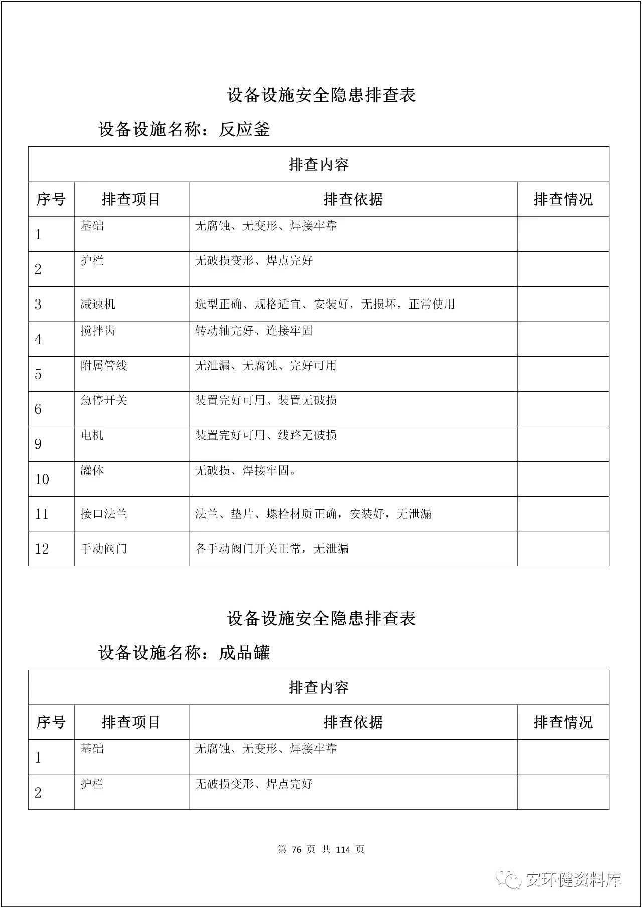 【尖貨】100多頁隱患排查表,附標準依據(word版)