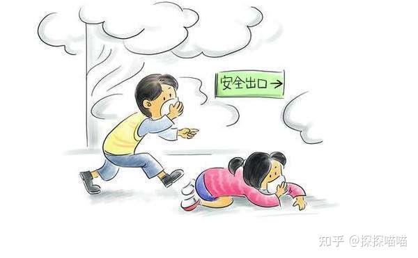 - 濕毛巾捂口鼻,彎腰低姿撤離!