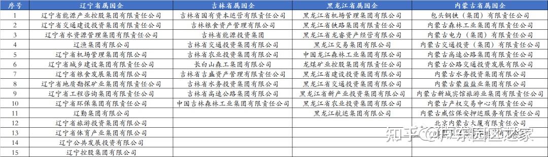東北三省共有36家省屬國企,其中遼寧省15家、黑龍江11家、吉林省10家。相對其他省份,在行業分布上東三省因其豐富的林業資源,森工集團是省屬國企的一大特色。此外,內蒙古擁有13家省屬國企。