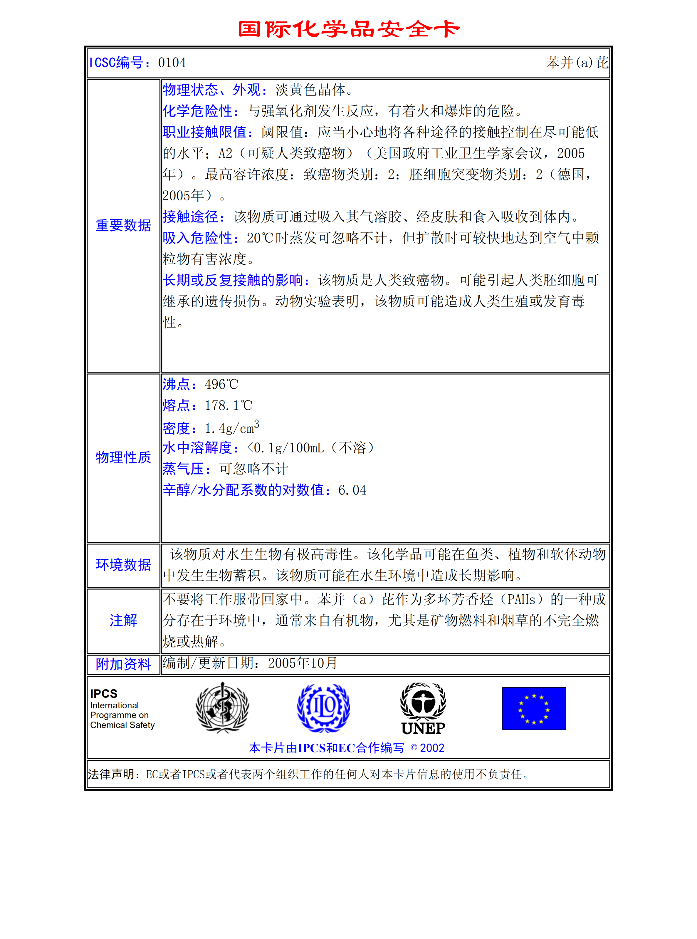 苯并芘MSDS