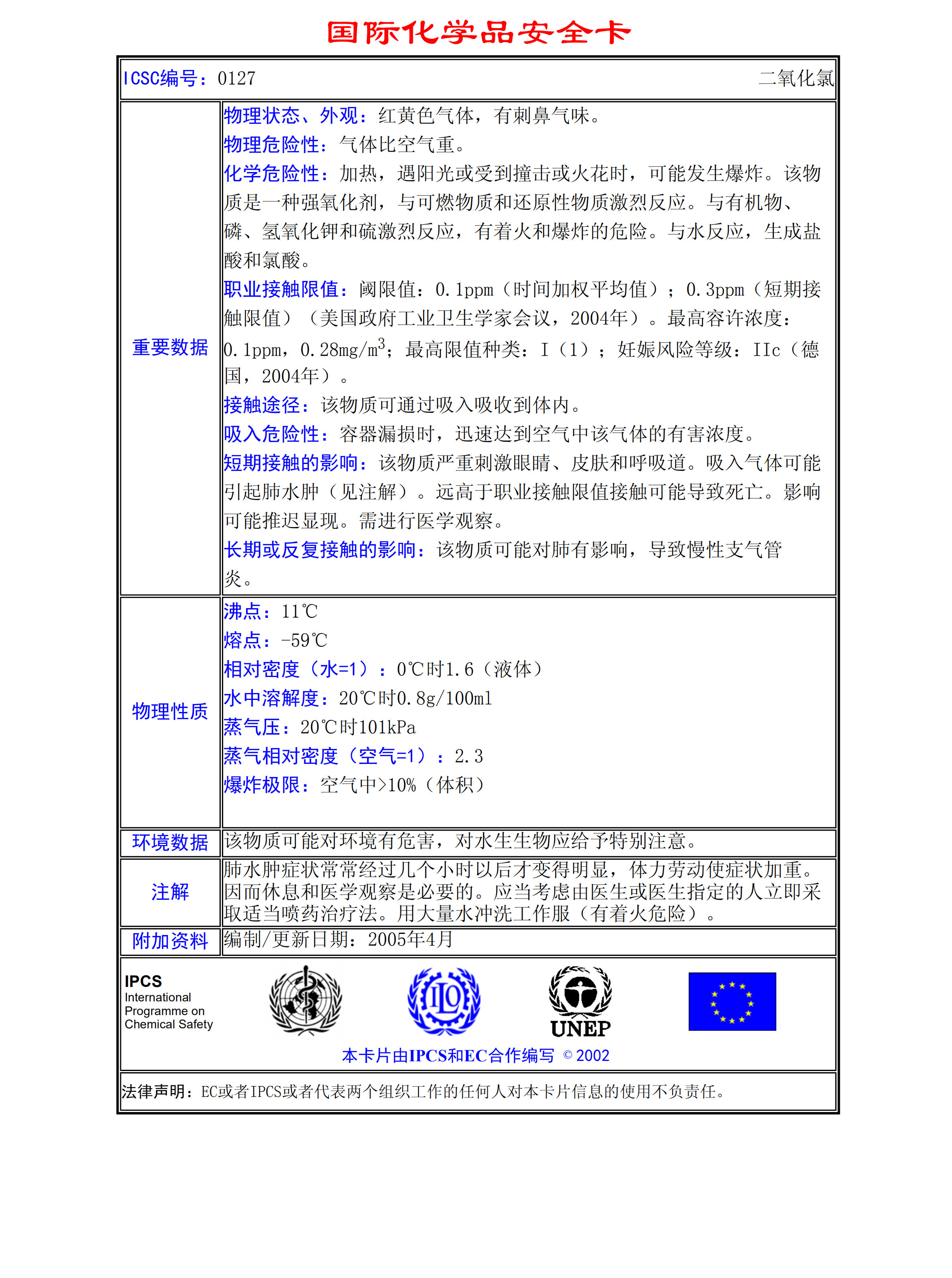 二氧化氯MSDS