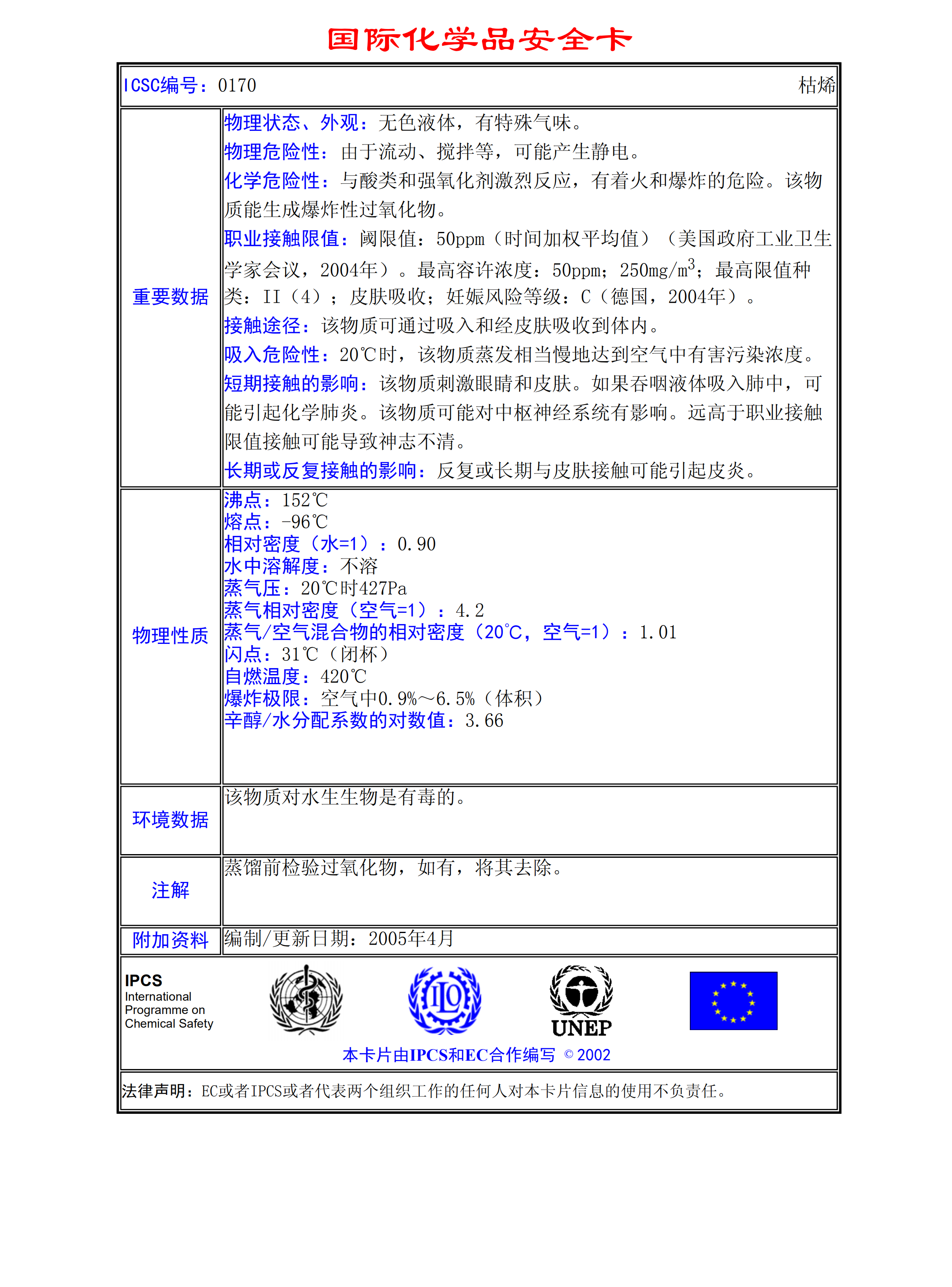 枯烯MSDS