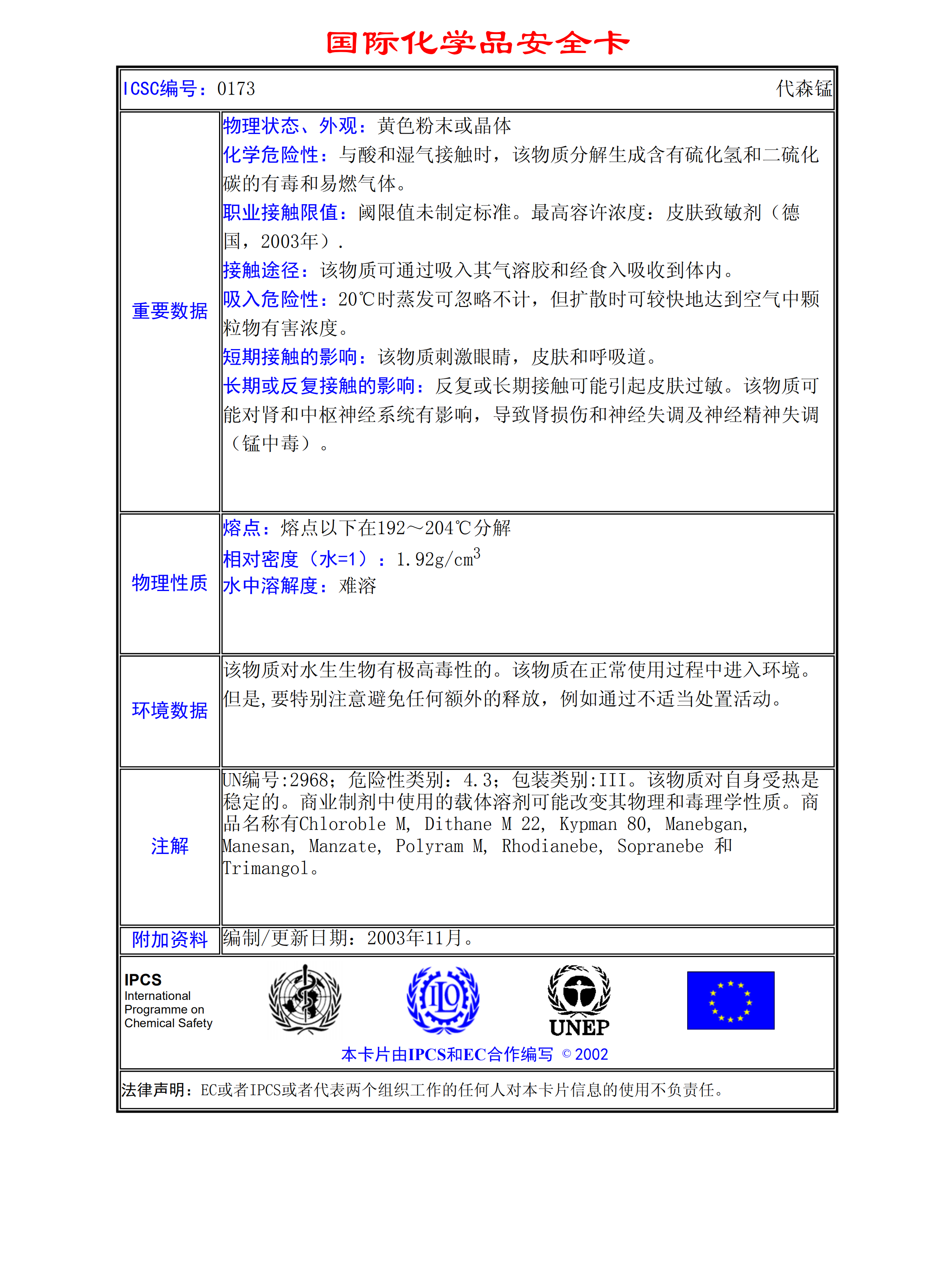 代森錳MSDS