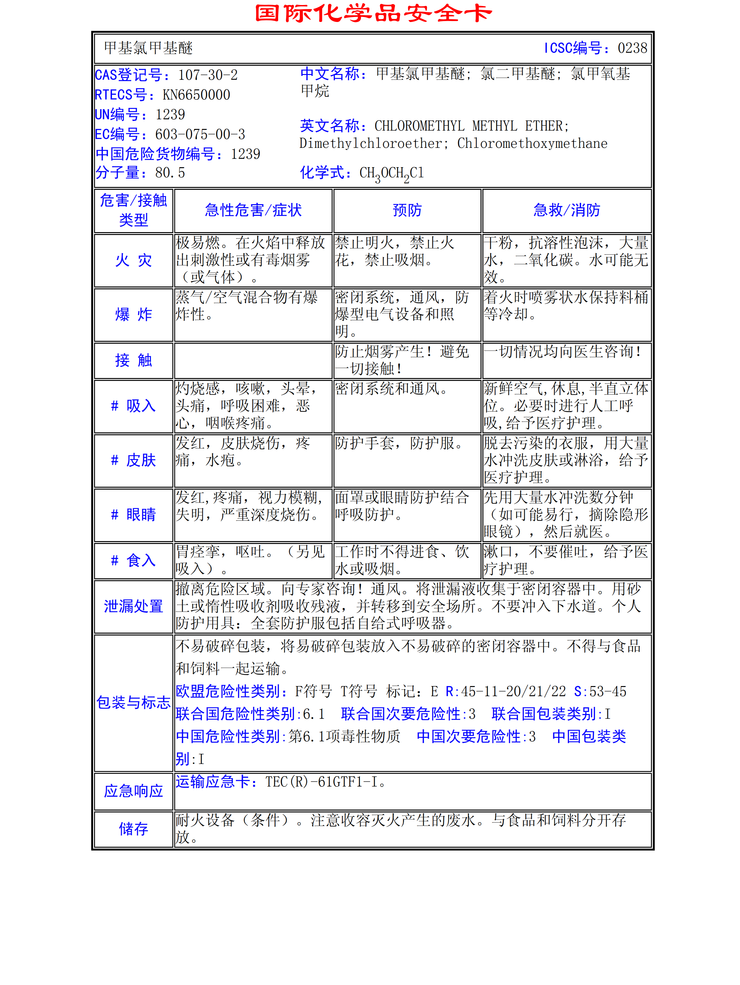 二氯甲基醚MSDS