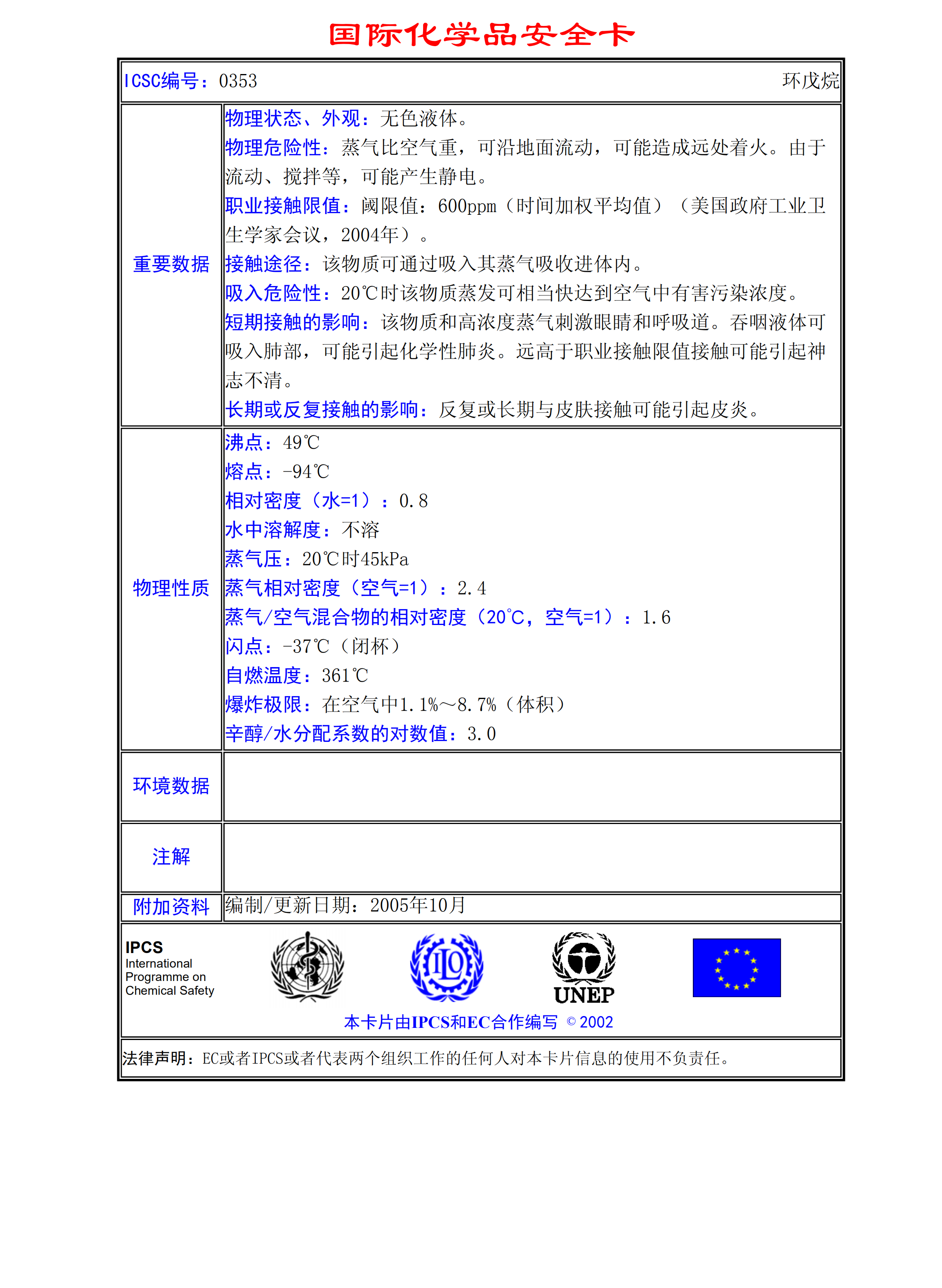 環戊烷MSDS