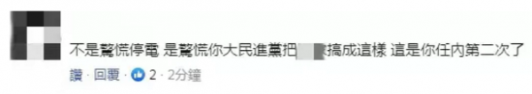 也有網友怒斥民進黨當局:不是驚慌停電,是驚慌你民進黨把臺灣搞成這樣,這是你任內第二次了。↓