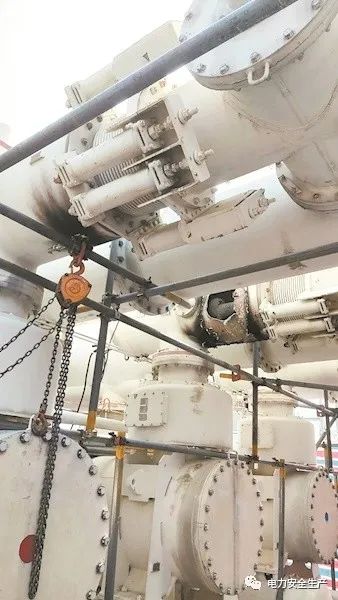發生爆炸的電廠345千伏GIS的里的刀閘放電,殼體燒穿了